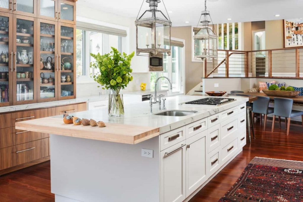 Twoje miejsca pracy, takie jak blaty, mogą mieć oświetlenie podszafkowe, podczas gdy blaty śniadaniowe mogą mieć opuszczane światła powyżej, aby zapewnić skupione oświetlenie. Wentylatory nad płytą grzejną zwykle mają wbudowane światła, które okazują się wystarczające do oświetlania obszaru gotowania. Słabe oświetlenie kuchni może być rzeczywiście bardzo niepokojące – więc zaplanuj ten pokój ostrożnie.